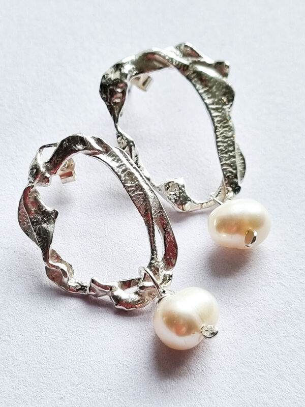 As a celebration of 25 years in business, these zero-waste silver earrings are part of my silver celebration collection: the Art Nouveau shapes are made from the off-cuts after sea-glass or stone settings have been cut out. Each one is completely original.