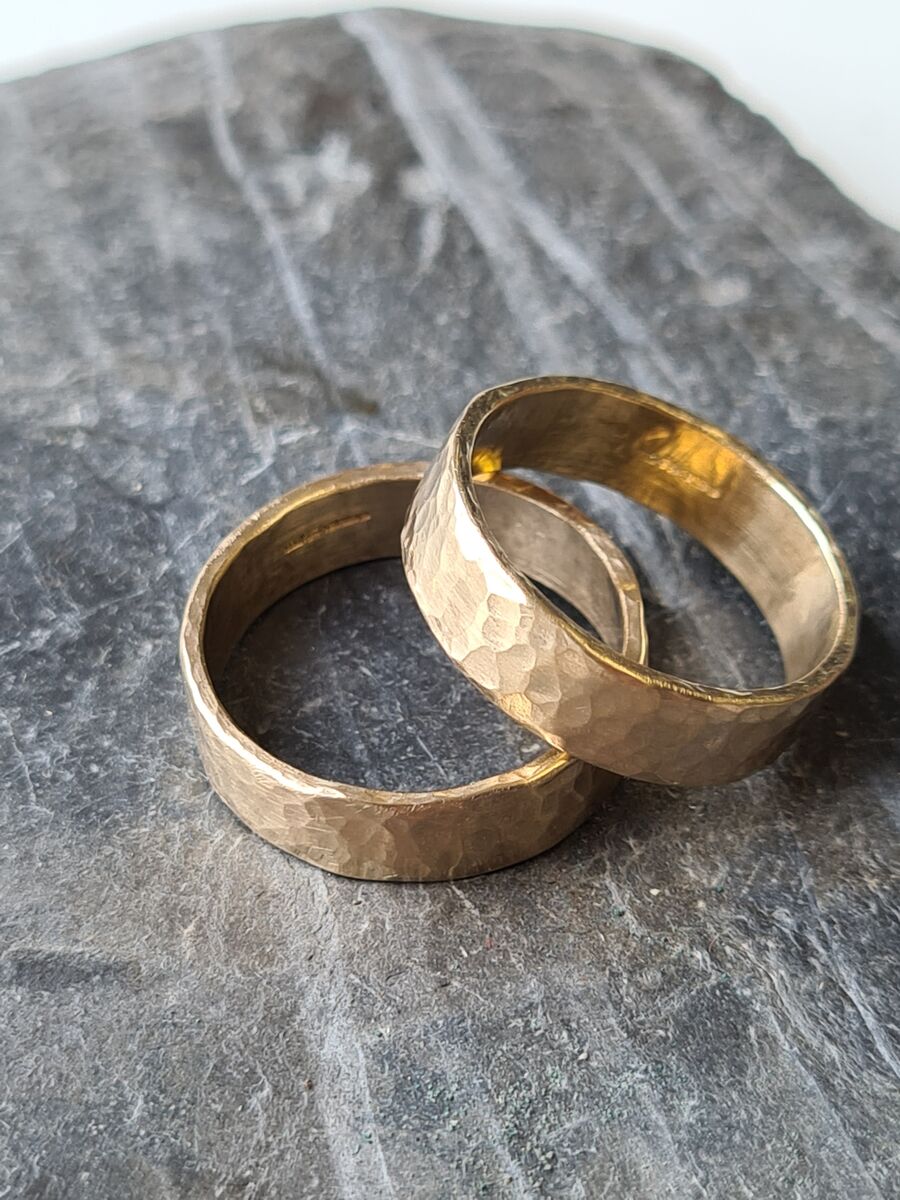 It's a 5mm wide, 1mm thick solid 9ct recycled gold band: